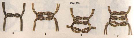 Шнур из «геркулесовых» узлов (рис. 28). Этот узел известен с глубокой древности, его называют ещё простой, или прямой морской, «отшельник», плоский без основы, узел Геракла.