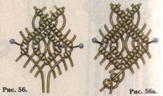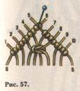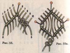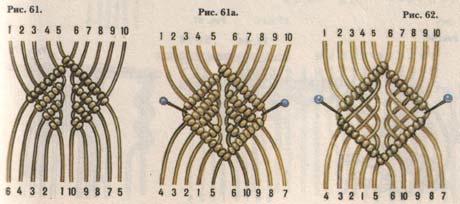 2 следующих под ним — на восьми нитях в середине ромба и последний — четырьмя средними (рис. 57а).