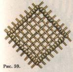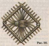 В ромб можно «вписать» один общий двойной плоский узел (рис. 58) или заполнить его разновидностями узора «полотнянка», похожего на штопку (рис. 59).