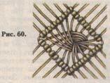 Можно нити внутри ромба разделить пополам и левым пучком обвить правый (рис. 60), затем нити расправить и закончить нижние стороны ромба.