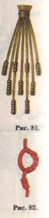 Из простого узла делают валики (рис. 81), которыми можно заканчивать бахрому и кисти. Этот приём называют узел «капуцин», «сережка».