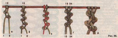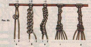Эти узлы можно использовать для закрепления нитей бахромы (рис. 84).